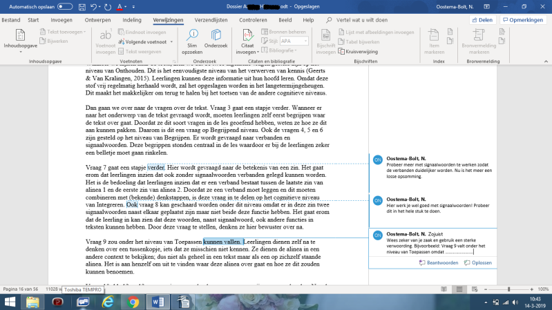Op de opleiding heb ik klasgenoten ook met enige regelmaat feedback moeten geven. Mijn klasgenoot en ik spraken dan af dat ik het verslag via de mail zou ontvangen. Dit was het makkelijkste omdat ik dan aan de hand van opmerkingen mijn feedback kon geven. Zo was het voor beide partijen duidelijk waar ik feedback op had gegeven.