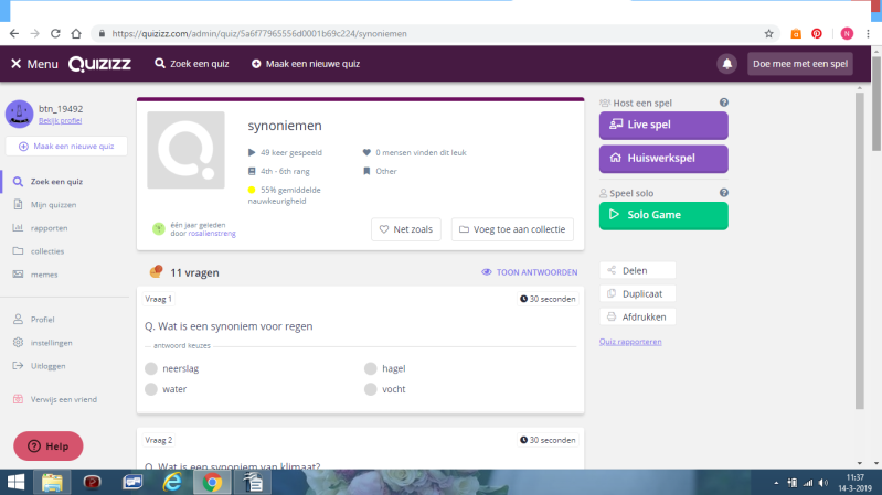 Zoals ik al eerder heb aangegeven, werk ik vaak met apps en games. Leerlingen vinden het vaak prettig om op deze manier hun voorkennis te activeren of juist te oefenen voor een toets. Ik doe dit regelmatig met een Kahoot maar ik gebruik ook met enige regelmaat een quiz van Quizizz. Andere vormen van games of apps heb ik mij nog niet zo eigen gemaakt. Hier kan ik in de komende periode veel winst mee behalen.